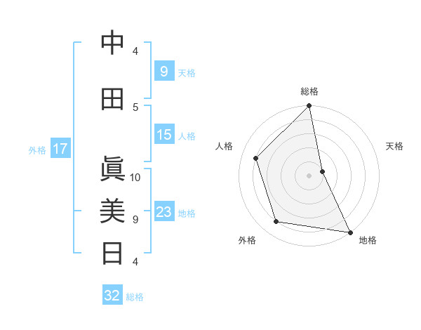 中田 眞美日さんを姓名の画数から五運を鑑定