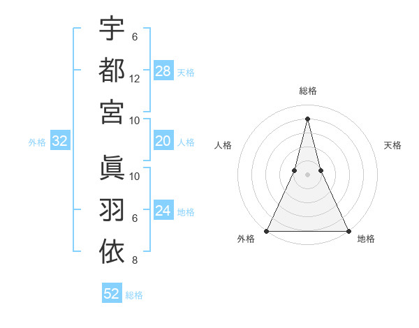 宇都宮 眞羽依さんを姓名の画数から五運を鑑定