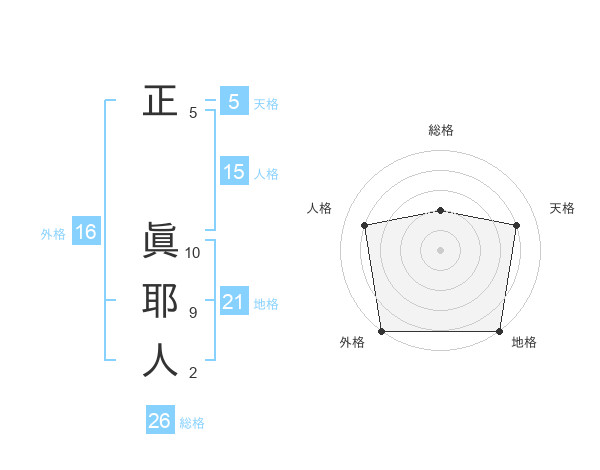 正 眞耶人さんを姓名の画数から五運を鑑定