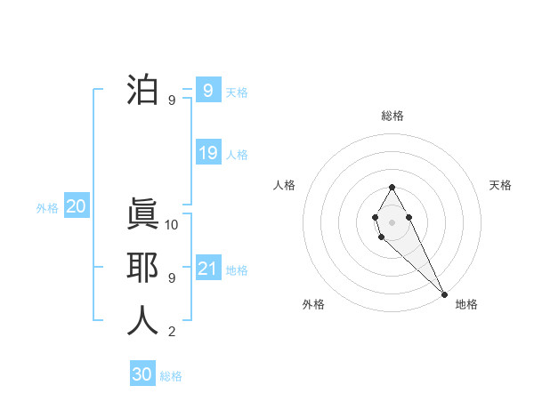 泊 眞耶人さんの総格は30画の2点!