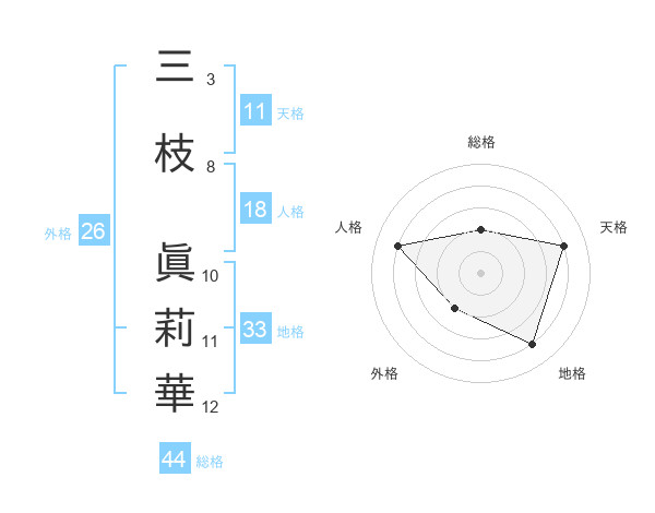 三枝 眞莉華さんを姓名の画数から五運を鑑定