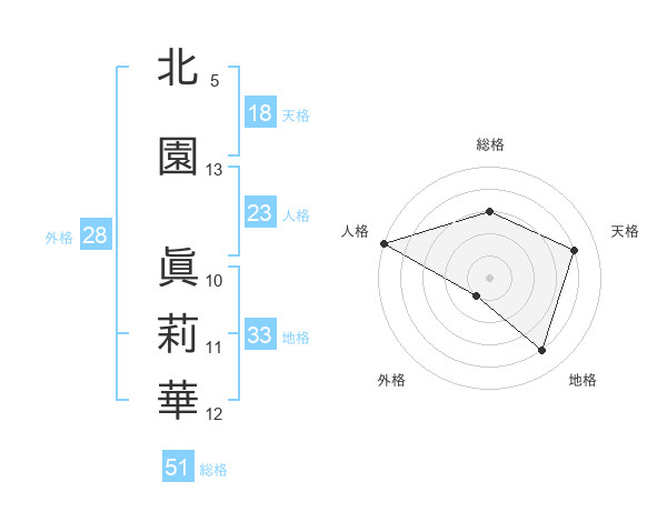 北園 眞莉華さんの総格は51画の3点!