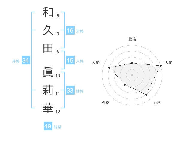 和久田 眞莉華さんを姓名の画数から五運を鑑定