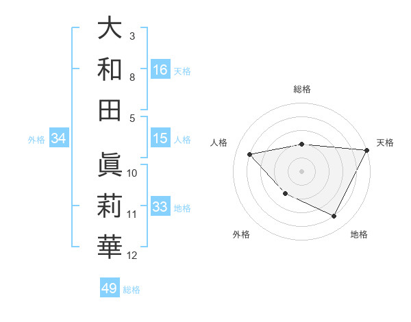 大和田 眞莉華さんの天格は16画の5点!
