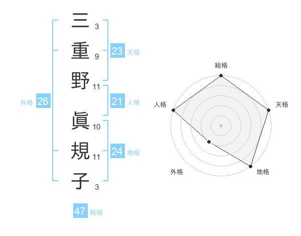 三重野 眞規子さんを姓名の画数から五運を鑑定