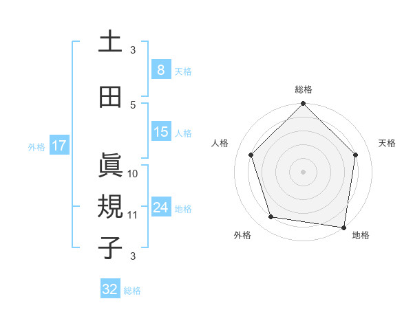 土田 眞規子さんの総格は32画の5点!