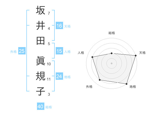 坂井田 眞規子さんの人格は15画の4点!