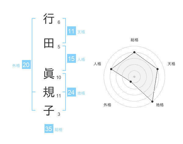 行田 眞規子さんの総格は35画の4点!