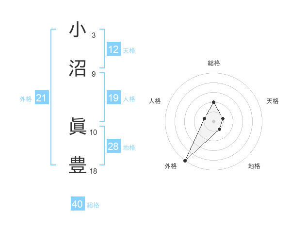 小沼 眞豊さんの外格は21画の5点!
