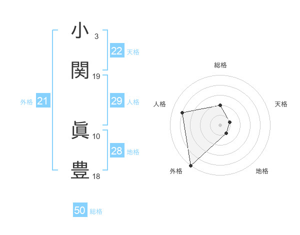 小関 眞豊さんを姓名の画数から五運を鑑定