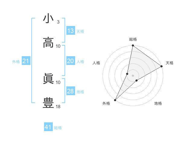 小高 眞豊さんの総格は41画の5点!