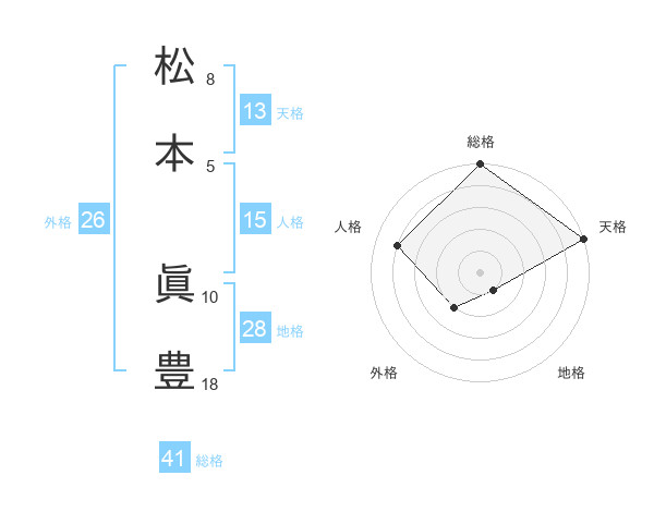 松本 眞豊さんの総格は41画の5点!