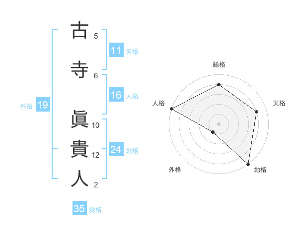 古寺 眞貴人さんの総格は35画の4点!