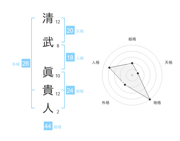 清武 眞貴人さんを姓名の画数から五運を鑑定