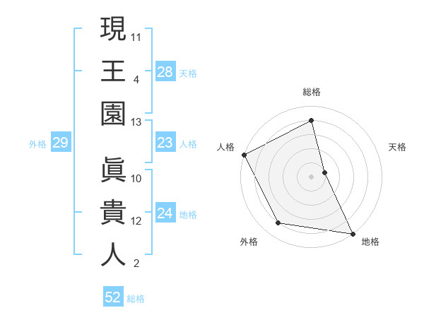 現王園 眞貴人さんを姓名の画数から五運を鑑定
