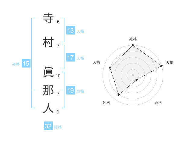 寺村 眞那人さんを姓名の画数から五運を鑑定