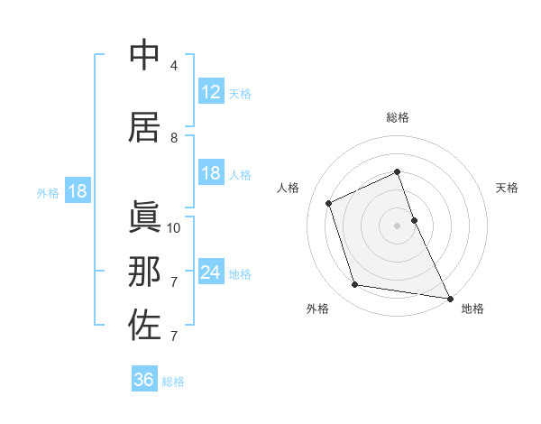 中居 眞那佐さんの天格は12画の1点!