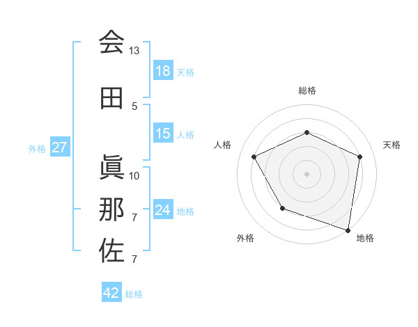 会田 眞那佐さんを姓名の画数から五運を鑑定
