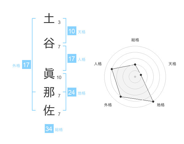 土谷 眞那佐さんを姓名の画数から五運を鑑定