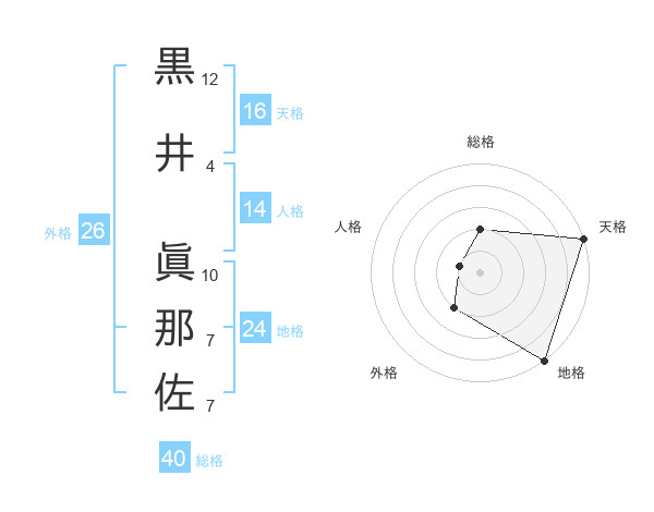 黒井 眞那佐さんの天格は16画の5点
