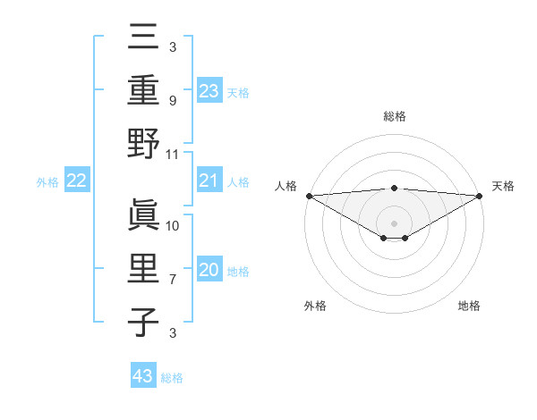 三重野 眞里子さんを姓名の画数から五運を鑑定