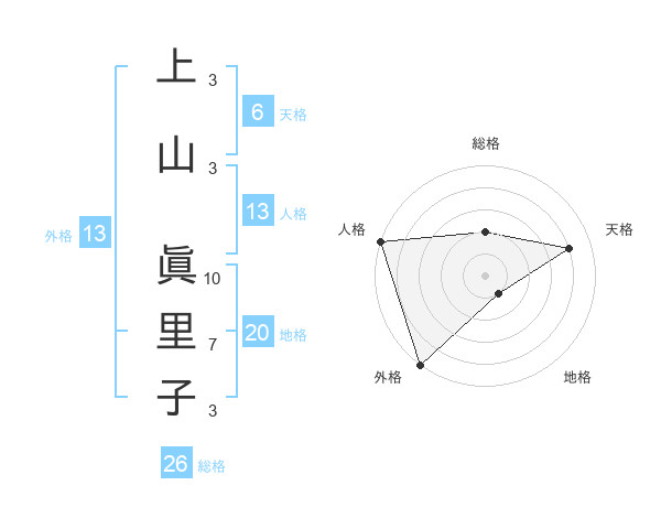 上山 眞里子さんの外格は13画の5点!