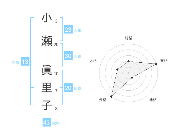 小瀬 眞里子さんの外格は13画の5点!