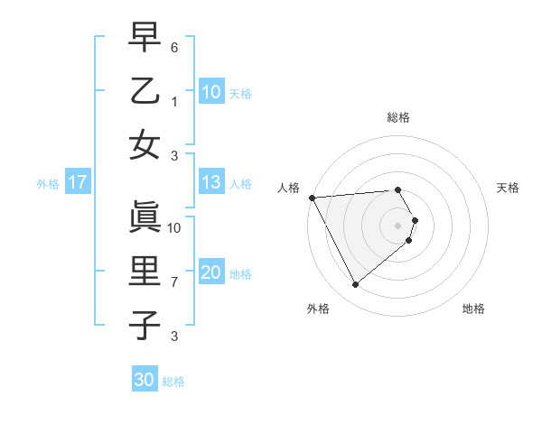 早乙女 眞里子さんを姓名の画数から五運を鑑定