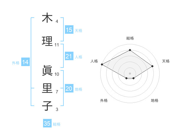 木理 眞里子さんを姓名の画数から五運を鑑定