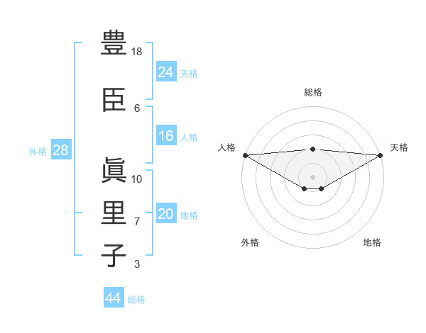 豊臣 眞里子さんを姓名の画数から五運を鑑定