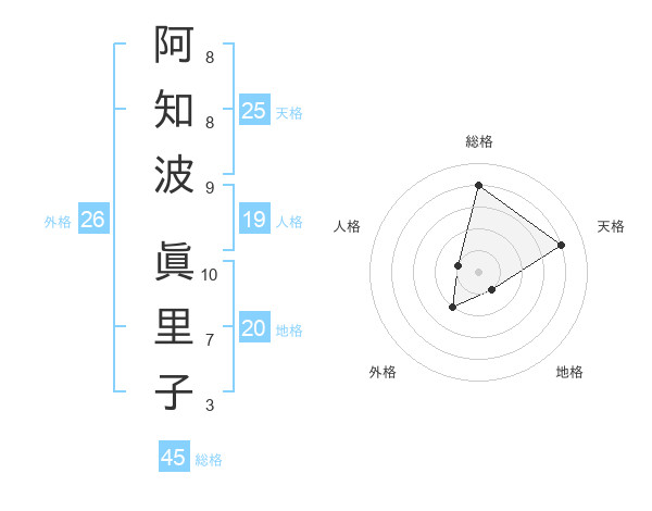 阿知波 眞里子さんを姓名の画数から五運を鑑定