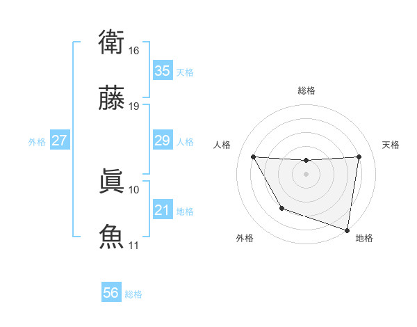 衛藤 眞魚さんの天格は35画の4点!