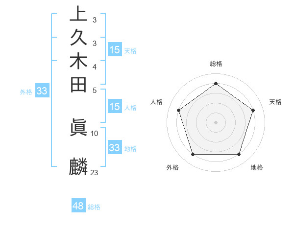 上久木田 眞麟さんを姓名の画数から五運を鑑定