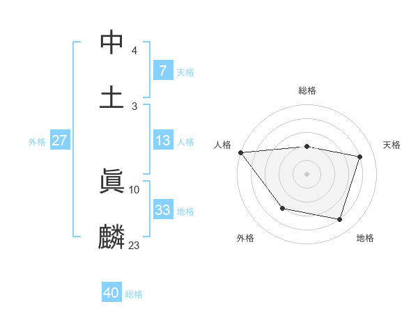 中土 眞麟さんの総格は40画の2点!