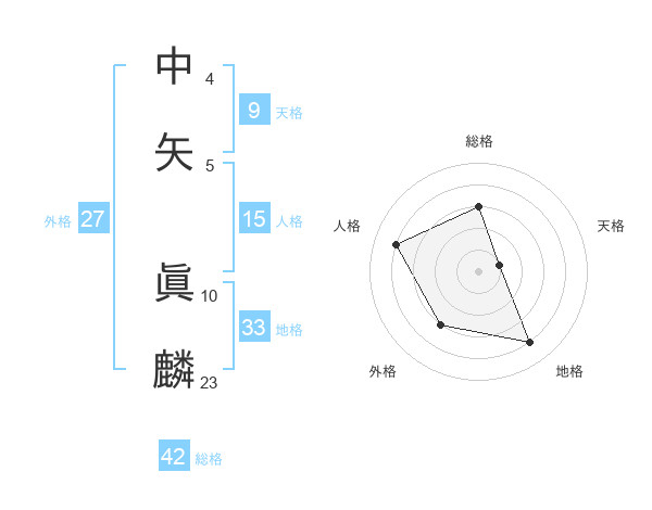 中矢 眞麟さんの総格は42画の3点!