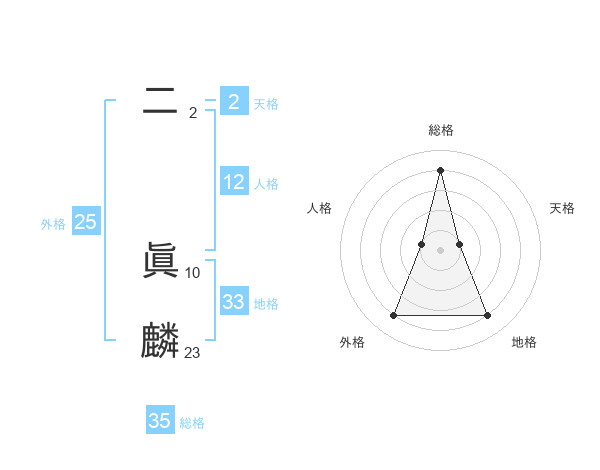 二 眞麟さんの総格は35画の4点!