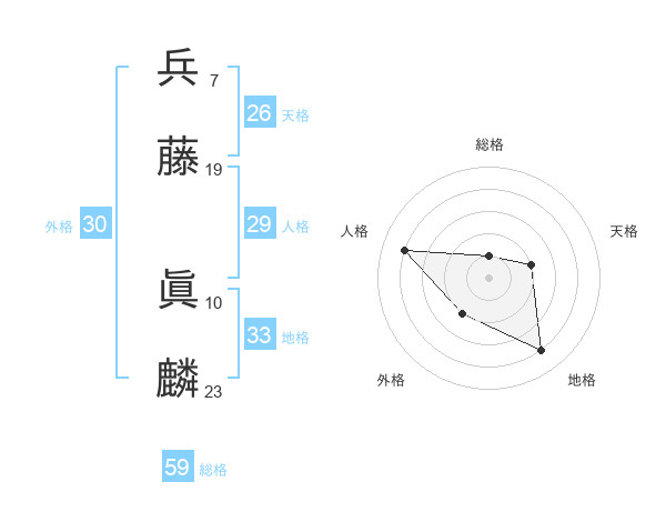 兵藤 眞麟さんを姓名の画数から五運を鑑定