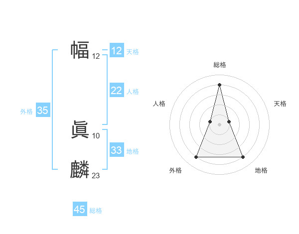 幅 眞麟さんの総格は45画の4点!