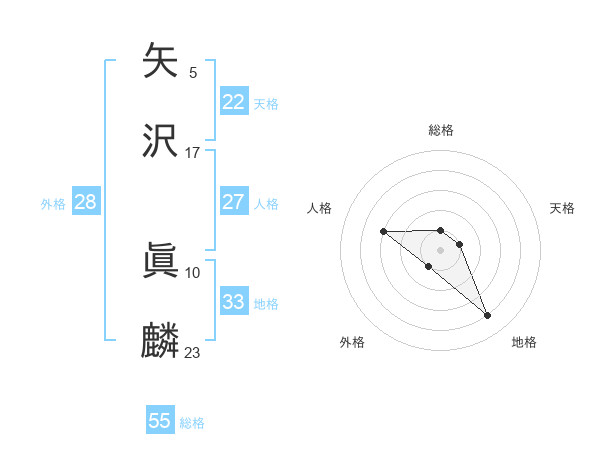 矢沢 眞麟さんを姓名の画数から五運を鑑定