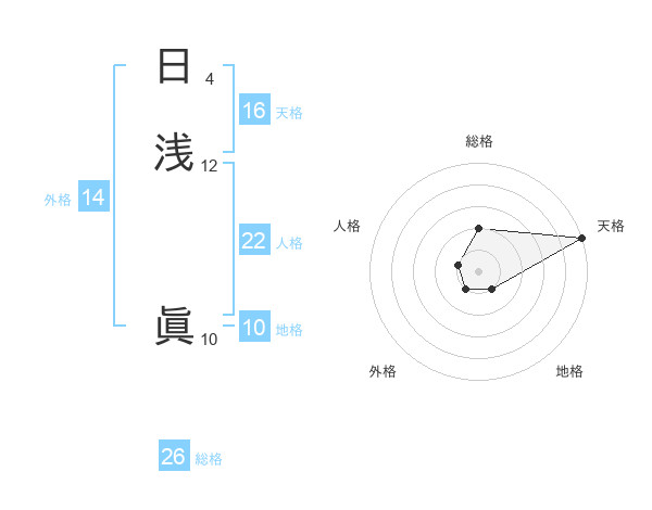 日浅 眞さんの天格は16画の5点!