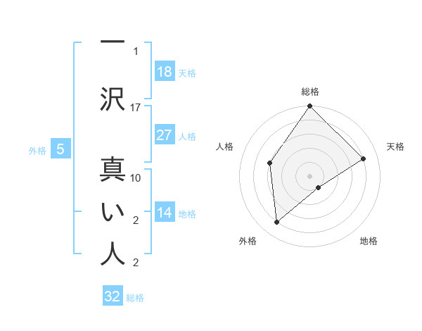 一沢 真い人さんを姓名の画数から五運を鑑定