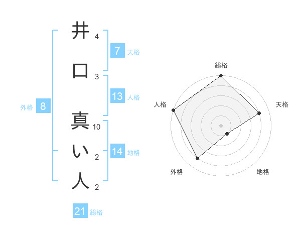 井口 真い人さんの総格は21画の5点!