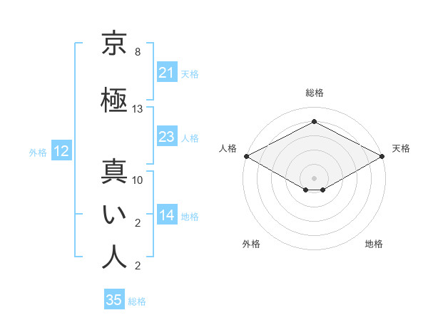 京極 真い人さんの総格は35画の4点!