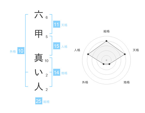 六甲 真い人さんを姓名の画数から五運を鑑定