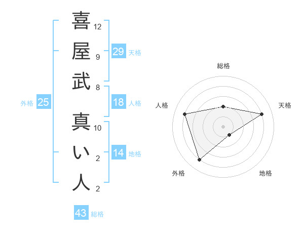 喜屋武 真い人さんを姓名の画数から五運を鑑定