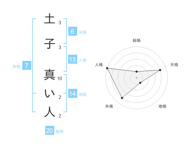 土子 真い人さんの総格は20画の1点!