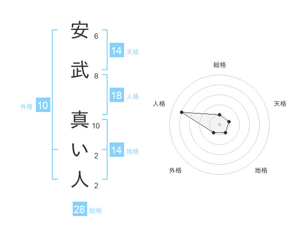 安武 真い人さんの総格は28画の1点!
