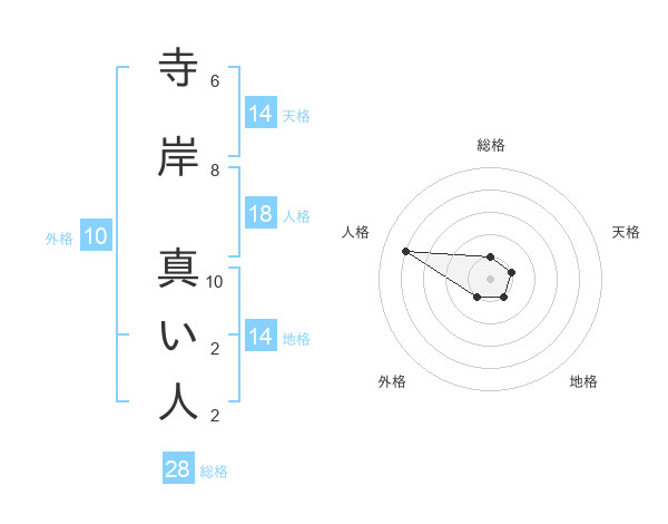 寺岸 真い人さんの地格は14画の1点!