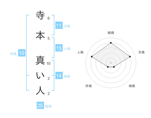 寺本 真い人さんを姓名の画数から五運を鑑定