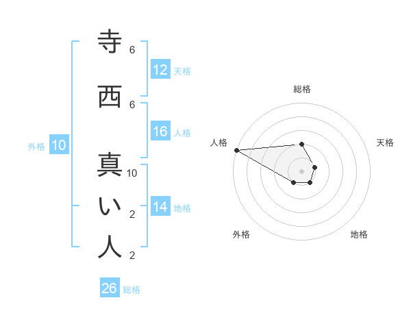 寺西 真い人さんを姓名の画数から五運を鑑定
